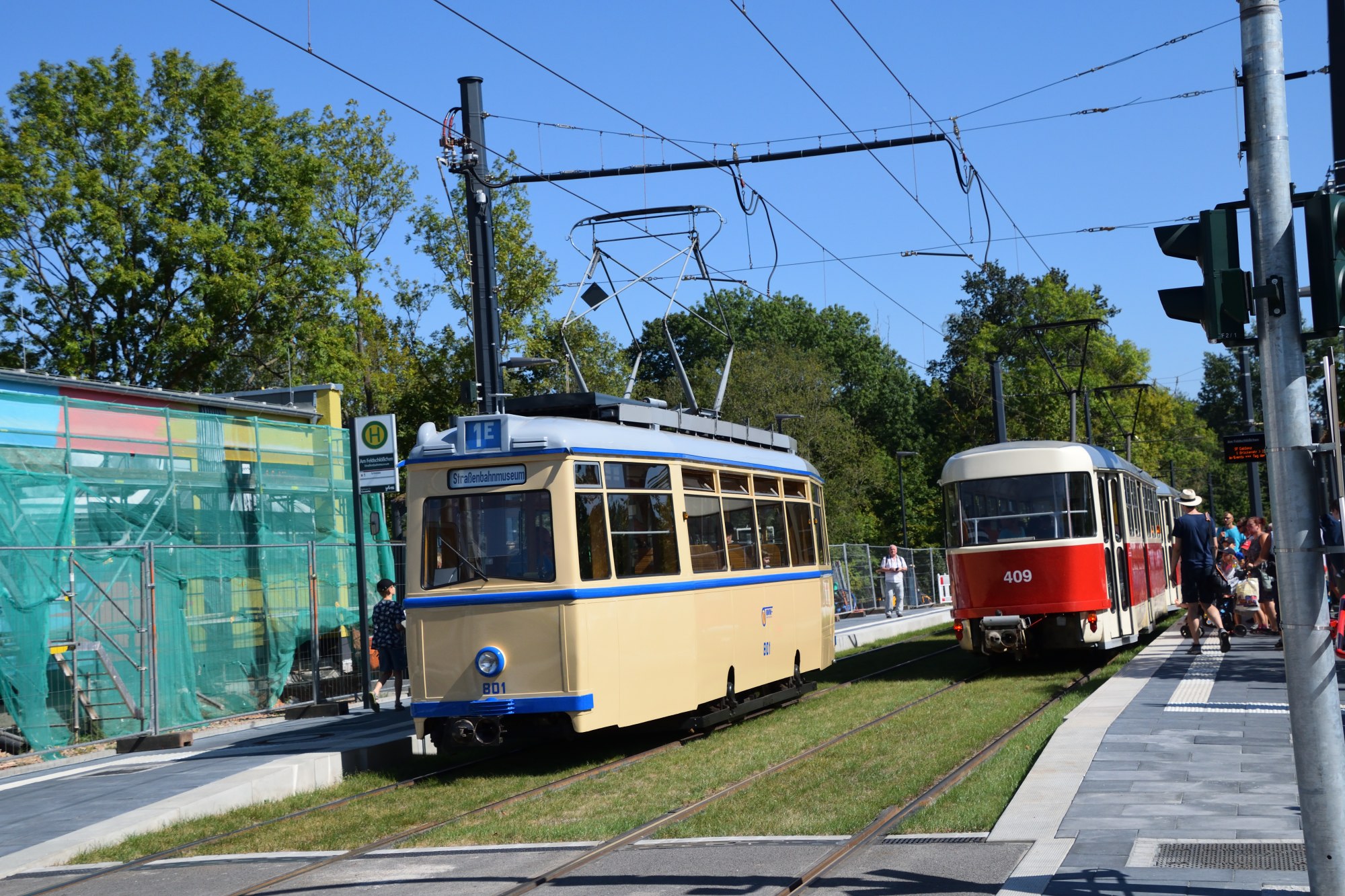 801, 409 + 410 am Feldschlößchen/Straßenbahnuseum Kappel